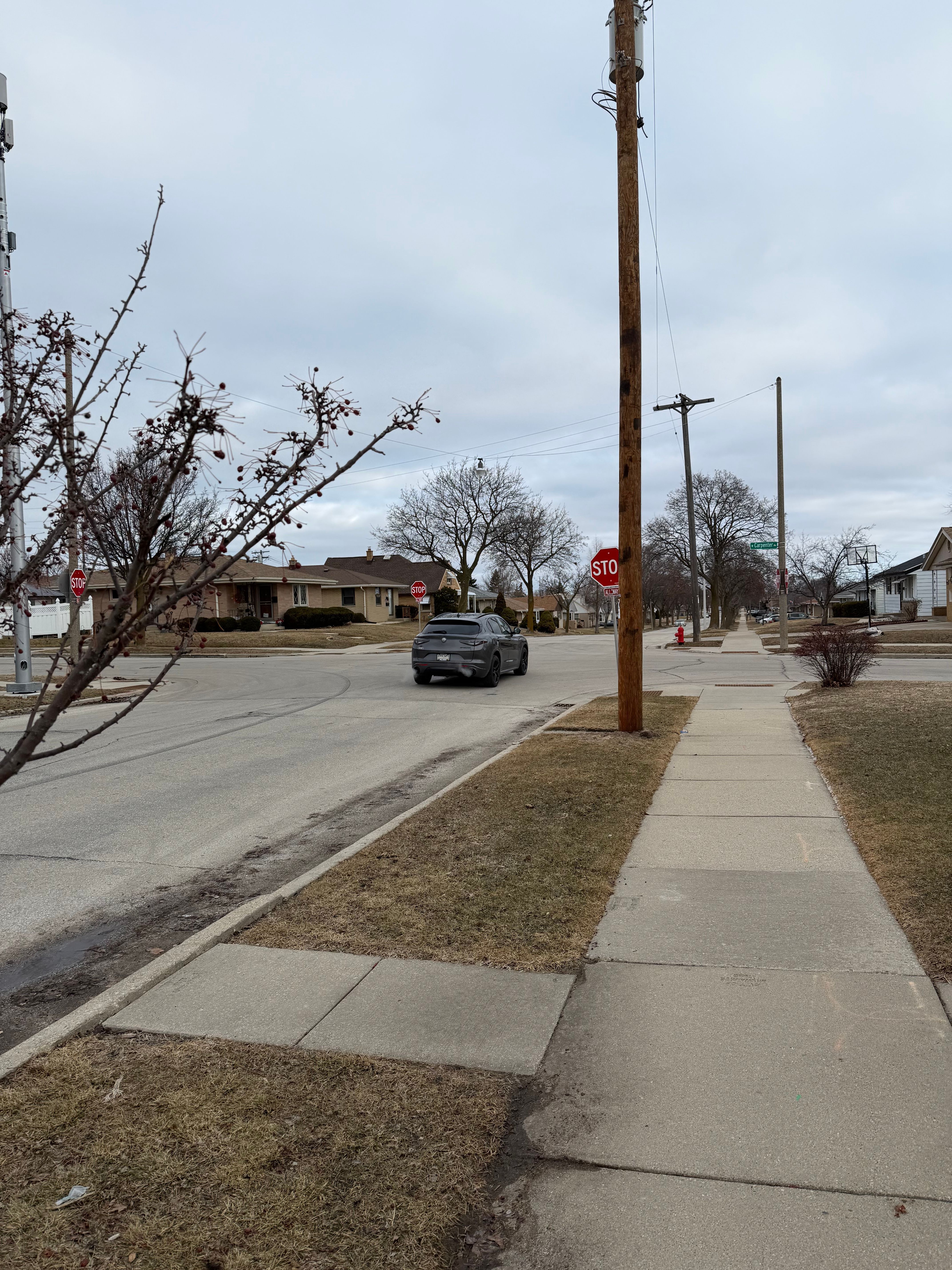 A black Alfa Romeo Stelvio blows through the stop sign at S 23rd and W Halsey Ave without braking.